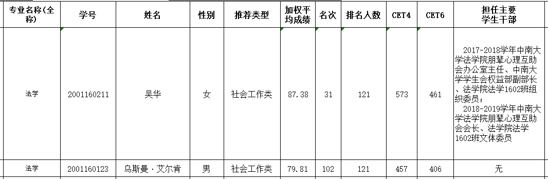 公示时间为2019年9月10日12:00至2019年9月11日12:00。公示期间,如对拟推荐人员有异议,请以实名向中南大学法学院学生工作办公室进行反映。