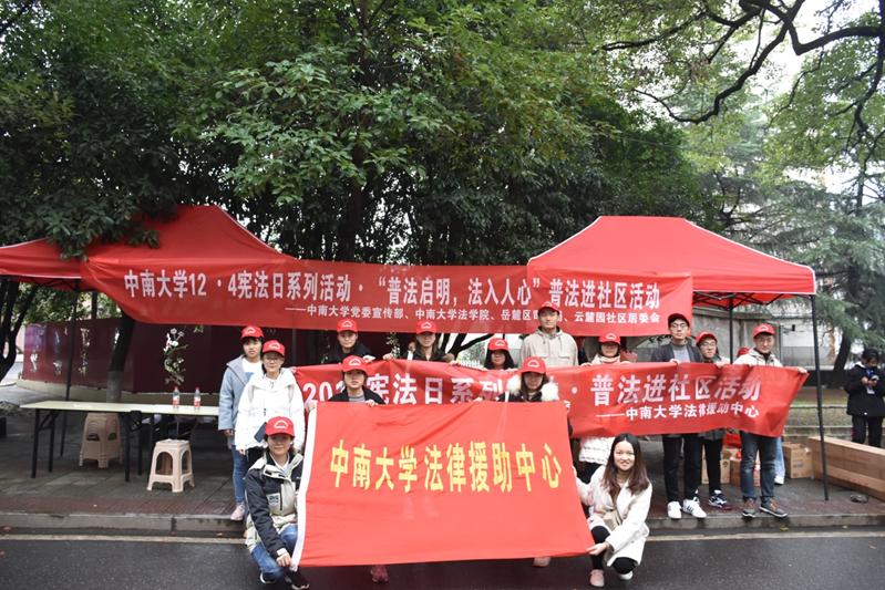 12月1日上午,由中南大学党委宣传部主办、中南大学法学院承办的宪法宣传周“普法启明,法入人心”普法进社区活动在云麓园社区顺利开展,来自中南大学法学院的三十余名本科生、研究生志愿者参与了本次活动。