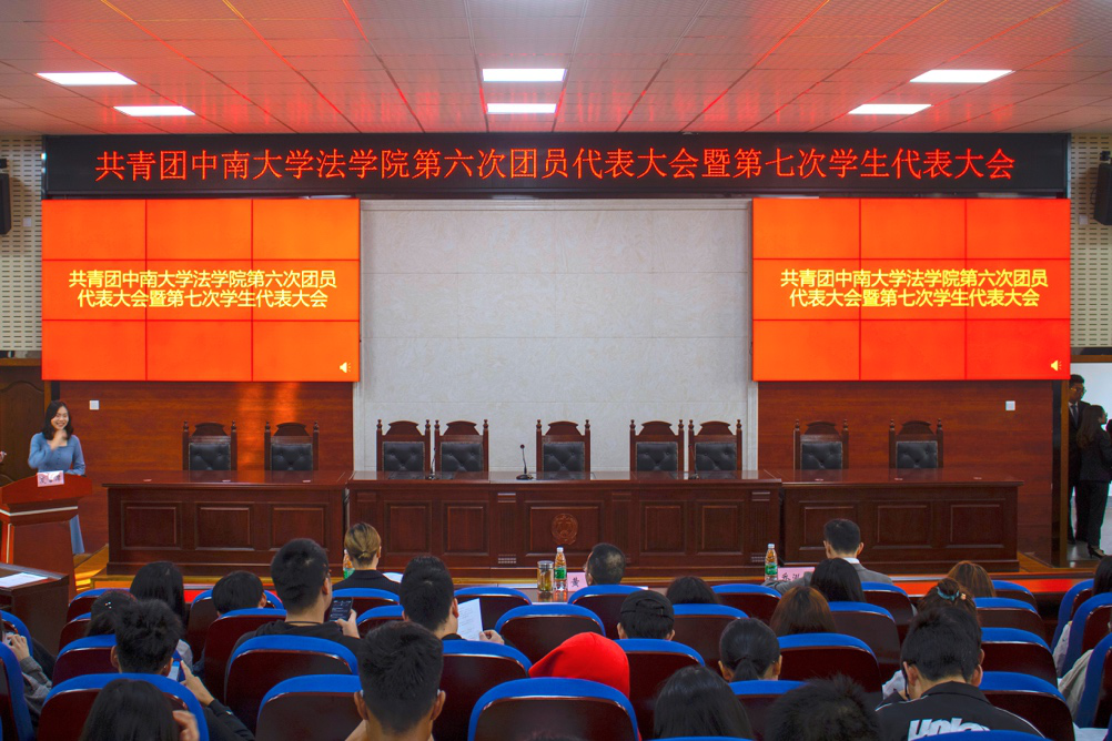 2019年11月3日上午,共青团中南大学法学院第六次团员代表大会暨第七次学生代表大会在文法楼221报告厅胜利召开。中南大学校团委副书记乔泓瑞、中南大学法学院党委副书记黄曦、中南大学法学院团委书记谢琰和中南大学法学院学生代表等出席了本次代表大会。