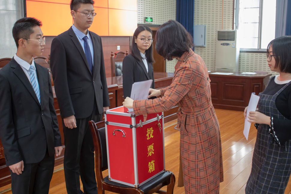 遵循民主集中制的原则,本着公平、公正、公开的准则,代表们完成了填选票、投票环节,由工作人员完成计票。随后,总计票人公布计票结果,主持人公布选举结果。本次投票选举正式产生了共青团中南大学法学院第六届团委、学生会、研究生会委员。