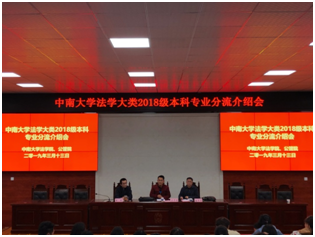 3月13日下午3时,我院2018级本科法学类专业分流介绍大会在法学院221会议室召开。会议由法学院党委副书记黄曦主持,法学院副院长许中缘教授、公共管理学院社会系主任潘泽泉教授、公共管理学院辅导员孙立明老师、法学院辅导员向鑫老师以及法学大类专业全体学生参与了大会。