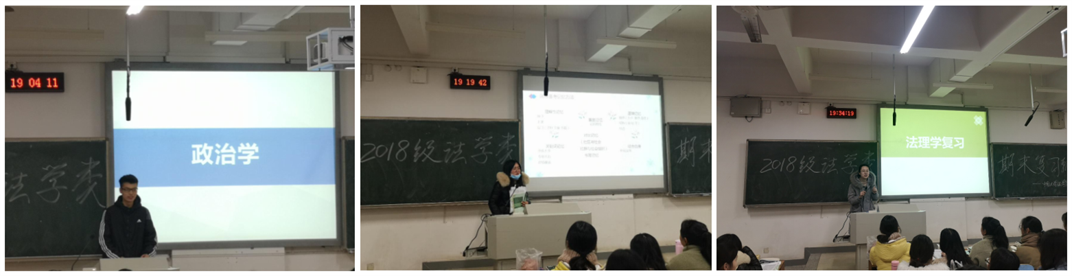 在活动伊始,首先邀请了来自公管院行管1701班的邵翊铭学长为同学们讲解政治学原理的复习要点与复习框架,分享了许多关于政治学原理考试的经验;紧接着,来自公管院劳保1702班的杭晨昕学姐则为同学们进行了社会学概论的考前辅导,详细地介绍了在复习这门课的时候可以运用的复习方法;随后,法学院法学1703班的李博昕学姐为大家介绍了法理学的考试内容与题型,并分享应考相关方法与技巧。现场的气氛十分积极热烈,在场的新生同学纷纷表示受益匪浅。