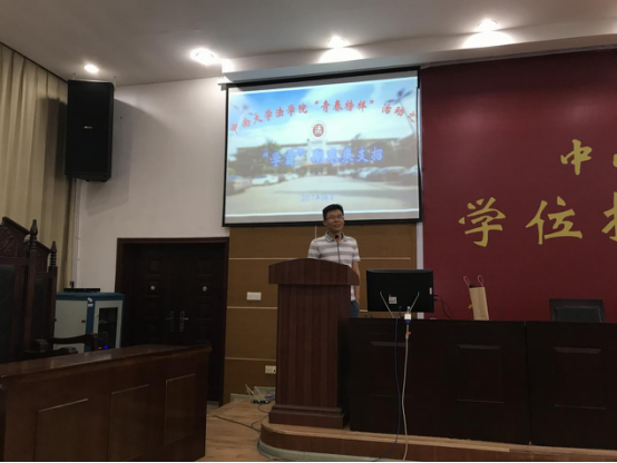 6月13日下午14时,法学院“青春榜样”之“‘学霸’期末来支招”活动在文法楼221会议室顺利举行。法学院罗伟秀同学、尹玉涵同学、王佩思同学和朱颖超同学应邀作为“保研学霸”代表为16级的同学们传授学习经验。16级辅导员王远征老师参加并主持了活动。