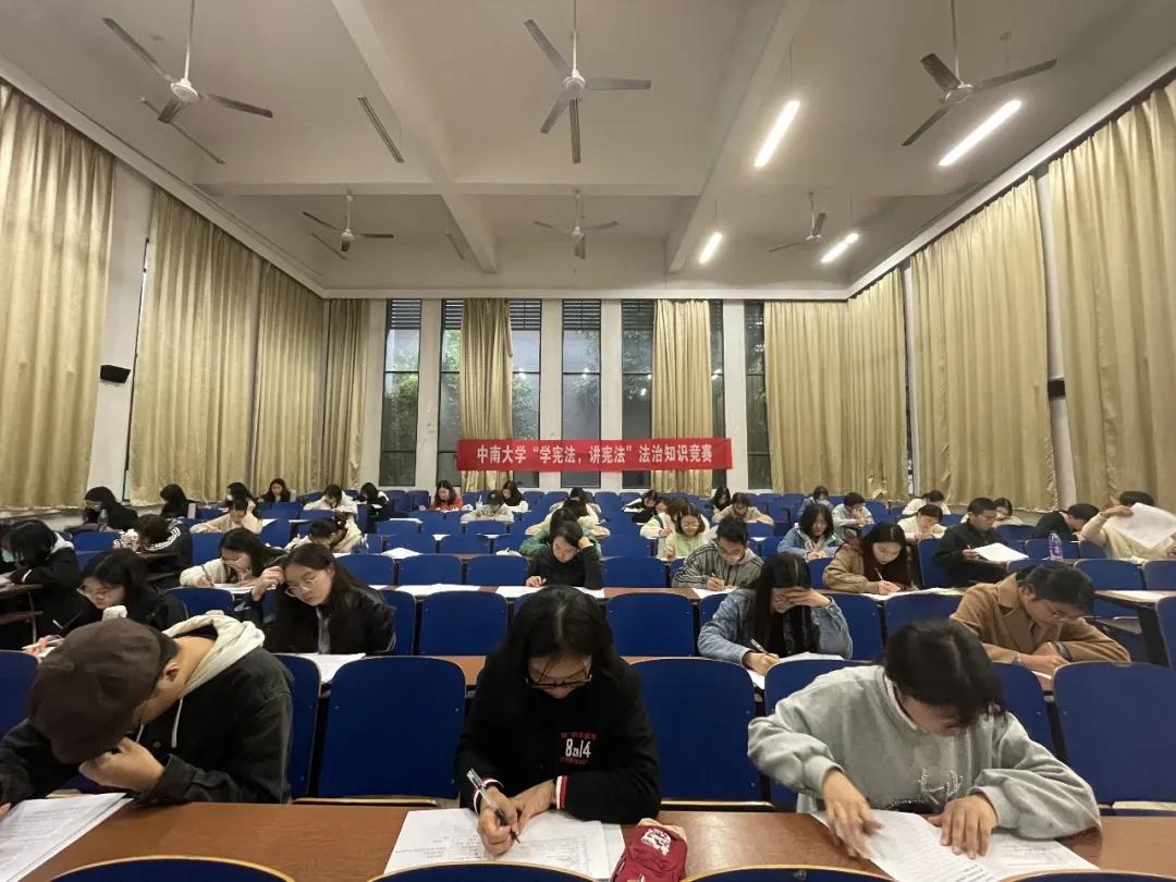 为普及宪法知识,弘扬宪法精神,让广大中南学子成为宪法的忠实崇尚者、自觉遵守者与坚定捍卫者,共同营造尊崇宪法、学习宪法、遵守宪法、维护宪法、运用宪法的良好氛围。由中南大学党委宣传部主办,中南大学法学院承办的“学宪法,讲宪法”法治知识竞赛于10月20日下午15:30,在新校区D座121,122,123教室举行,本次比赛共有来自全校二十多个学院共300余名学生参加。