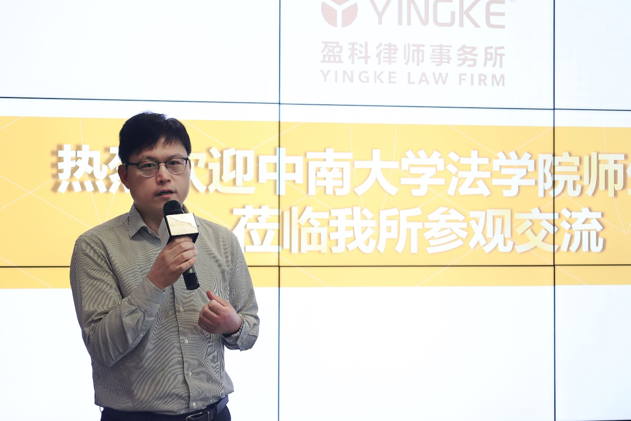 盈科长沙管委员会主任周彦向大家致欢迎辞。周律师首先对中南大学师生的到访表示了热烈的欢迎,期待今后和中南大学法学院建立更加长期深入的合作。除此之外,建议同学们辩证的认识律师这个职业,因为律师这个职业既有意思也没意思,有意思在于可以获得较高的社会地位化身“正义的使者”,没意思在于可能会面临“没有案件的压力和如何把案件处理好的压力”。最后,他向同学们分享了“如何成为一名优秀律师”的建议,努力实践并熟练运用自己的“脑瓜子”、“嘴巴子”、“笔杆子”这三大法宝。