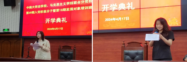 2024年4月17日下午3:00,中南大学法学院、马克思义学院联合分党校发展对象及入党积极分子培训班开学典礼在法学院221报告厅隆重举行。法学院党委书记李华东出席典礼并讲话,班导师李亚萍参加了典礼,本次开学典礼由法学院党委副书记刘勇主持。