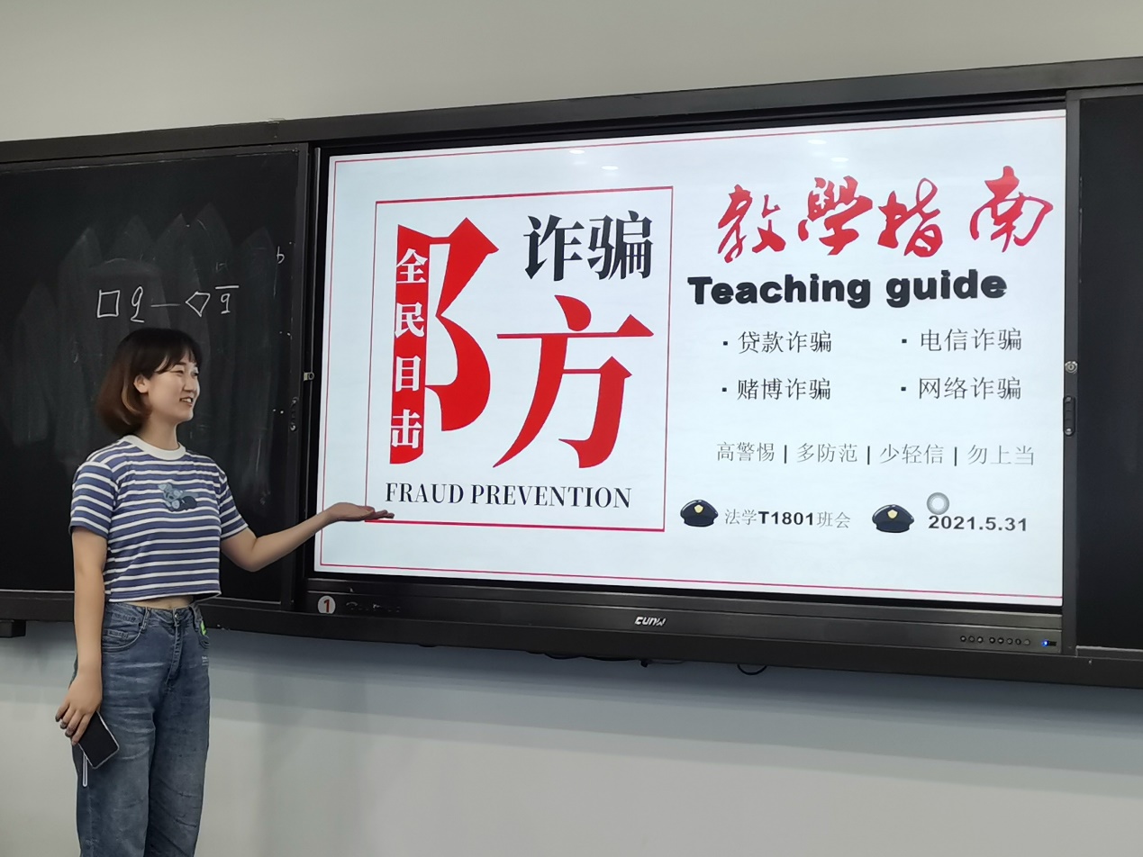 为提高同学们的防范意识,切实保护同学们的财产安全,法学院2018级卓越法律人才培养实验班于5月31日晚9时在新校区A座221开展了以“全民目击防诈骗”为主题的班会活动。全班16人皆积极参与班会,其中一位同学因特殊情况而采用线上方式参会。