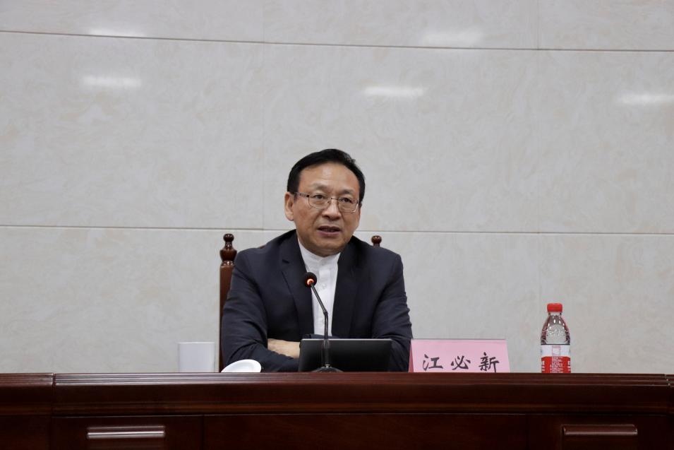为进一步增强我院党组织的凝聚力和战斗力,提高党员的党性修养,教育引导党员坚定理想信念,3月17日晚19:30,法学院党委在文法楼221组织开展“习近平法治思想研究”专题党课,第十三届全国人民代表大会宪法和法律委员会副主任委员,中国法学会副会长江必新教授作了专题报告,党课由许中缘教授主持,我院全体师生党员参加了本次党课。