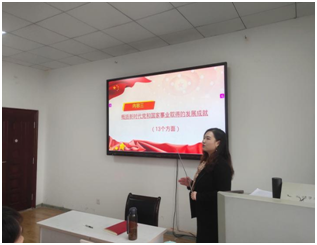 徐靖同志以《对党的十九届六中全会公报深度解读》为主题向全体党员深刻解读了十九届六中全会公报的意义,讲述了总结中国共产党百年奋斗重大成就和历史经验的重要性、习近平新时代中国特色社会主义思想核心内容、新时代党和国家事业取得的发展成就、中国共产党百年奋斗的历史意义和宝贵经验。