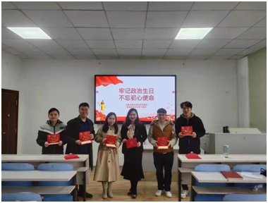 会议中,依托学习党的十九届六中全会公报的契机,为行政法支部的党员同志过“政治生日”。政治生日是党员的一次新生,徐靖同志讲述了政治生日对于一名共产党员的意义:“这个生日是你们政治生活的开始,从此以后,你们的身上多了一份责任和使命,作为一名共产党员,无论什么时候,都要不忘初心,牢记使命,永远不要忘记自己为什么出发。”在活动过程中,徐靖同志代表行政法支部将精心准备的“政治生日贺卡”赠送给10名政治生日为12月的教师党员和学生党员,并为他们送去“政治生日”的祝福。