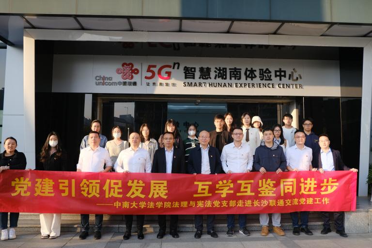 2024年10月30日下午,秋风送爽,阳光明媚,中南大学法学院法理与宪法党支部一行在法学院党委书记李华东的带领下,走进中国联合网络通信有限公司湖南省分公司(以下简称湖南联通),开展了一场别开生面的党建交流活动。此次活动旨在通过互学互鉴,共同探索党建工作新路径。
