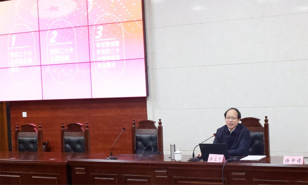 11月24日上午,中国工程院院士、中南大学党委常委、副校长柴立元同志来到法学院实验法庭,以“深入学习宣传贯彻党的二十大精神 奋力推进学校事业内涵式高质量发展”为题,为法学院法理与宪法党支部、物理与电子学院本科生第三党支部和土木工程学院天佑2101班讲授专题党课,从党的二十大召开的总体情况、主要精神、学校贯彻落实具体要求三个方面作了全面系统的解读,并结合实际对师生学习贯彻党的二十大精神提出要求。