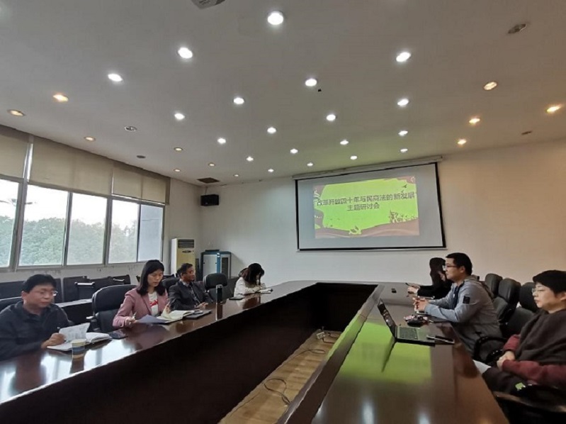 2019年11月6日下午2点半,法学院民商法支部于法学院210室开展了“改革发展抓落实”主题党日活动,本次党日活动由支部书记龚博老师主持,支部党员围绕“改革开放四十年与民商法的新发展”展开研讨。