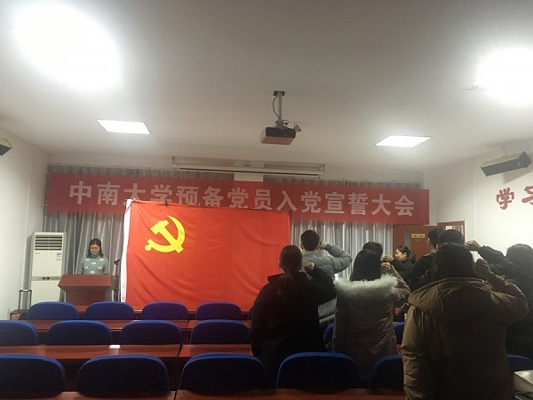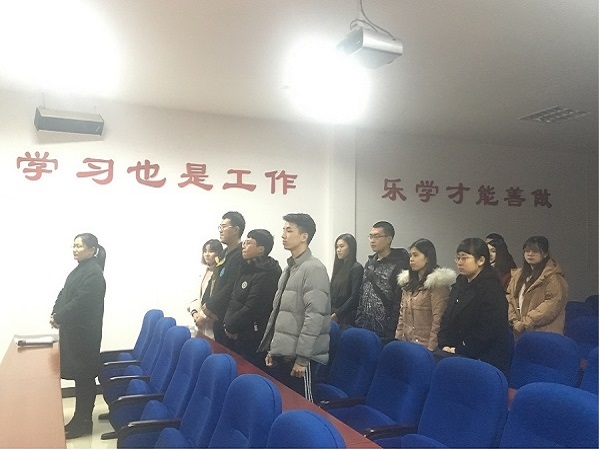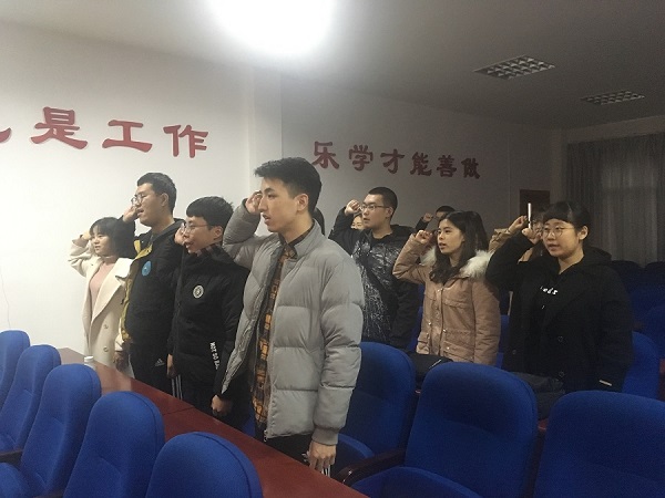 2018年12月26日下午一点,法学院在南校区党校入党宣誓教育基地召开预备党员入党宣誓大会。大会由法学院分党校班导师李亚萍老师主持,法学院组织干事李娜老师和14名预备党员参加了大会。