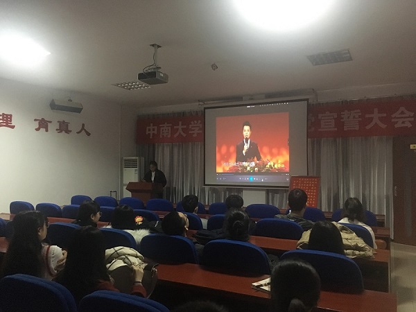在雄壮的国歌声中,大会正式拉开了帷幕。紧接着李亚萍老师宣读了预备党员名单,每一位预备党员听到自己的名字后眼中都闪着光,那是对党发自内心的热爱与向往。随后全体党员在李娜老师的带领下面向党旗庄严宣誓:“我志愿加入中国共产党,拥护党的纲领,遵守党的章程,履行党员义务,执行党的决定,严守党的纪律,保守党的秘密,对党忠诚,积极工作,为共产主义奋斗终身,随时准备为党和人民牺牲一切,永不叛党。”