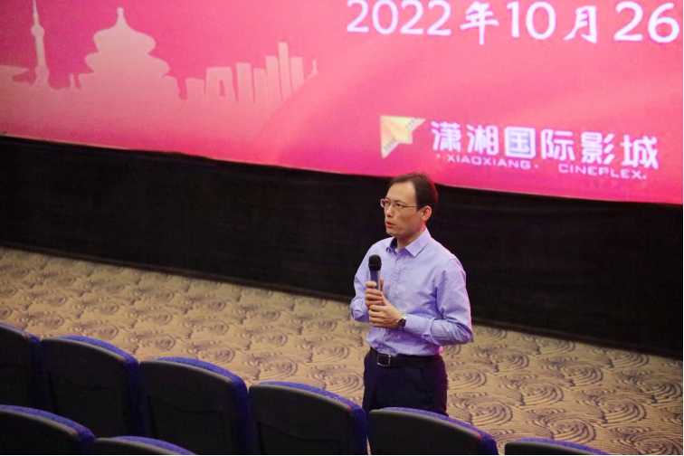 党委书记毛俊响同志为活动致辞:该影片以真实的撤侨事件为背景,展现了我国以人民为中心的外交思想。此次观影活动正值二十大胜利幕之际,二十大报告中专章论述国家安全,与此次电影的主题紧密相关,希望各位党员同志在观影后能够进一步加深对二十大重大论断的深刻理解。