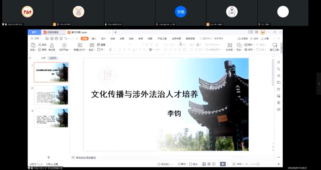 中国人民大学法学院党员教师李钧同志以“文化传播与涉外法治人才培养”为题,结合自己的留学经历,强调了文化对于个人、民族、国家的重要性,涉外法治人才的培养需要加强中外文化的学习。