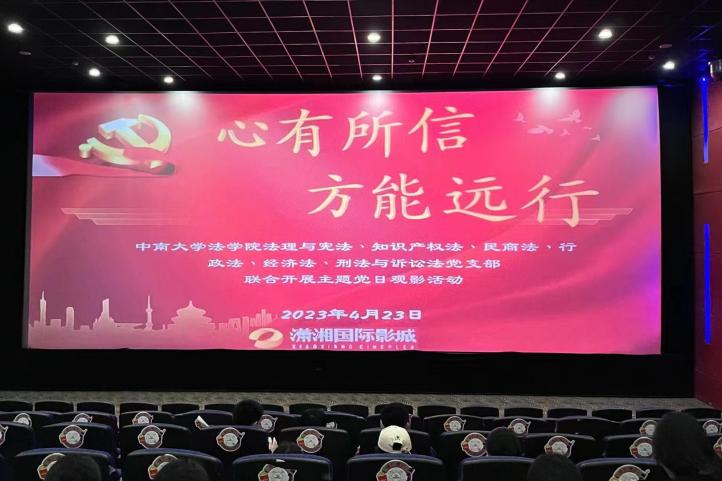 为学习贯彻习近平新时代中国特色社会主义思想主题教育,引导广大党员深入了解党的百年奋斗历史,4月23日,中南大学法学院法理与宪法党支部、行政法党支部、刑法与诉讼法党支部、知识产权法党支部、民商法党支部、经济法党支部于潇湘国际影城联合开展“心有所信,方能远行”红色观影活动。