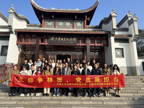 为贯彻习近平总书记关于“用好红色资源、赓续红色血脉”的重要指示精神,鼓励党员们树立红色理想、弘扬红色文化、磨砺意志品格,2023年12月6日,中南大学法学院法理与宪法党支部、行政法党支部前往刘少奇纪念馆、谢觉哉故居、何叔衡故居等地开展现场研学活动。