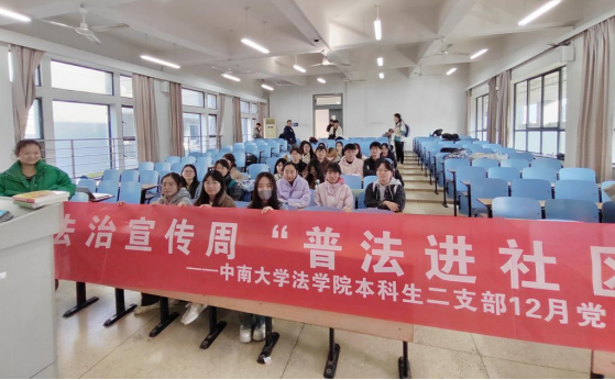为大力弘扬宪法精神,建设社会主义法治文化,提高社区居民法治素养,增强居民法治观念,在社区持续营造尊法学法守法用法的浓厚法治氛围,在第十个国家宪法日到来之际,12月6日下午,中南大学法学院本科生二支部、法学院朋辈心理互助会联合云麓园社区开展了“宪法宣传周——普法进社区”主题党日活动。