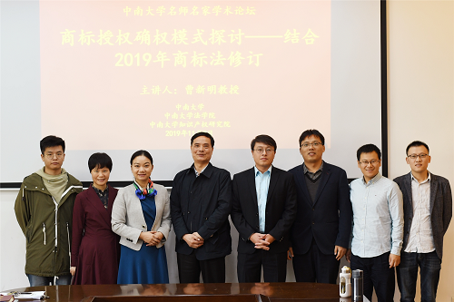 2019年11月8日上午,中南大学名师名家学术论坛之“商标授权确权模式探讨——结合2019年商标法修订”在中南大学法学院举行。此次论坛由中南财经政法大学知识产权研究中心主任、中国法学会知识产权法研究会副会长、博士生导师曹新明教授主讲,中南大学法学院副院长何炼红教授主持,中南林业科技大学法学院胡潇潇副教授、中南大学法学院刘强教授、瞿昊晖博士和部分研究生、本科生,以及实务界的专家等聆听了讲座。