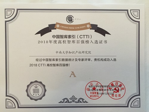 中南大学知识产权研究院成立于2011年4月26日,由中南大学和湖南省知识产权局联合共建,具有“战略、协同、共享”的特性,构建了“高校+政府+企业+中介”的智库运行模式,形成了“特色鲜明、制度创新、引领发展、服务社会”的建设思路。作为中南地区名列前茅的知识产权研究、人才培养和服务基地,研究院设有知识产权法学博士点与博士后流动站,是湖南省普通高等学校哲学社会科学重点研究基地、全国专利保护重点联系机制单位和湖南省科协省级海智基地。2016年12月,研究院入选中国智库索引(CTTI)首批来源智库;2017年12月,入选中国智库索引(CTTI)来源智库高校智库100强;2018年5月,研究院入选湖南省委宣传部认定的湖南省省级重点智库?专业特色智库;2018年12月,中南大学知识产权研究院成功入选CTTI高校智库A级榜单,进入前60强!