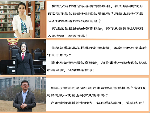 近日,在中国教育电视台和高等教育出版社联合策划推出的 “最美慕课——首届中国大学慕课精彩100评选展播活动”中,中南大学法学院何炼红教授负责、陈小珍法官和卢宏律师共同参与建设的《知识产权法》课程,在参评的百所高校申报的1850门课程中,脱颖而出,跻身前50门“最美慕课”之列,荣获“最美慕课”二等奖,同时也是前50强中唯一的法学慕课。本次活动本着"公平、公正、公开"的原则,通过学习数据分析、课程评价、专家评审等程序,从课程内容、教学设计、制作效果等多维度对申报课程的质量、创新性、适用性等方面进行评审,确定100门“最美慕课”,其中一等奖20名,二等奖30名,三等奖50名。“最美慕课”代表了慕课用户的学习风向标,对高校课程在线教学具有重要指导意义。