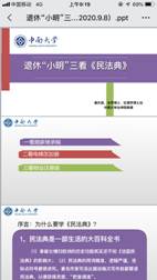 众所周知,《民法典》是新中国成立以来第一部以“法典”命名的法律,是一部“固根本、稳预期、利长远”的基础性法律,体现了中华民族的“精神密码”,被誉为社会生活的“大百科全书”,具有鲜明的时代特色、实践特色和中国特色。但《民法典》是在原来“九法合一”的基础上增加了人格权编,共7编计1260个条文,总字数逾10万(“10W+”),内容丰富博大精深,学习和理解其一系列的“新规定新概念新精神”,对于一般群众干部并非易事。所以,党中央和习近平总书记要求将民法典的普法工作,作为“十四五”时期普法工作的重点来抓。法学院教师员工对此表现非常踊跃,在自身学好用好民法典的同时,积极向学生、向社会进行宣讲,力图让民法典走近群众、走进教室、入脑入心。学院的许中缘教授、余卫明教授、蒋言斌教授、唐东楚教授、龚博副教授、匡凯老师等,先后多次受邀在新闻媒体、机关团体等进行民法典的访谈和讲课,取得了很好的社会效果、法律效果和政治效果。