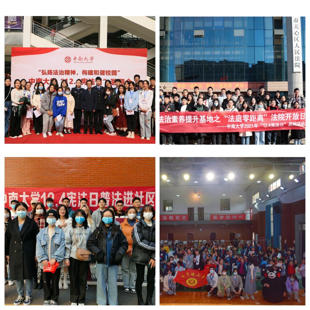 本次中南大学 “12.4宪法日”系列活动,包括了“普法进小学”、“普法进社区”、“普法进校园”、“法院开放日”、“宪法日游园会”等活动,举办了如“学宪法,讲宪法”演讲比赛、“学宪法讲宪法”法治知识竞赛、“宪法伴我行”微视频大赛、法治书法大赛等比赛,同时还邀请到来自社会各界的优秀校友代表为学生们做先进事迹报告,从多角度、多层次、多领域引导同学们深入学习宪法和法律,感受宪法之权威,领略法律之魅力,参与师生反响热烈、感受深刻。