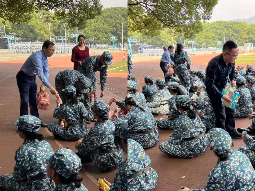 活动现场,法学院为每位新生准备了一瓶果汁饮料,学院领导和老师亲切地为新生发放果汁。休息间隙,法学院党委书记毛俊响和院长许中缘分别寄语新生,祝福新生能在军训中磨练意志、在大学四年里茁壮成长。学生们感受到来自学院满满的心意和暖意,都洋溢着快乐的笑容。