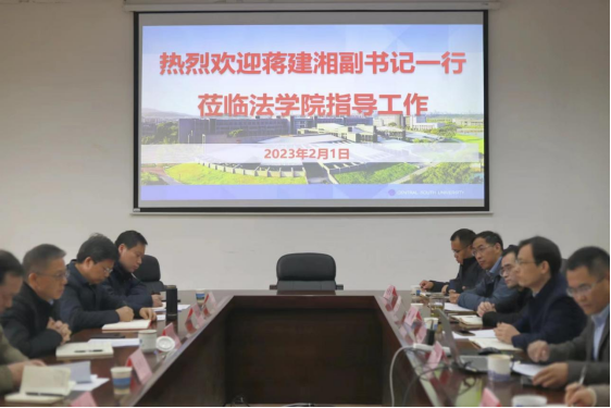 2月1日上午,暖阳高照,春和景明。中南大学校党委副书记蒋建湘一行到我院指导工作。科研部副部长彭忠益、人事处副处长王锡范、研究生院副院长胡玉玺、发展规划处丁时杰等陪同进行调研。我院党委书记毛俊响、院长许中缘、党委副书记黄曦、副院长敖双红、何炼红、杨清望、彭中礼,院长助理夏少涛,徐靖教授、易玲教授等参加调研座谈会。会议由毛俊响书记主持。