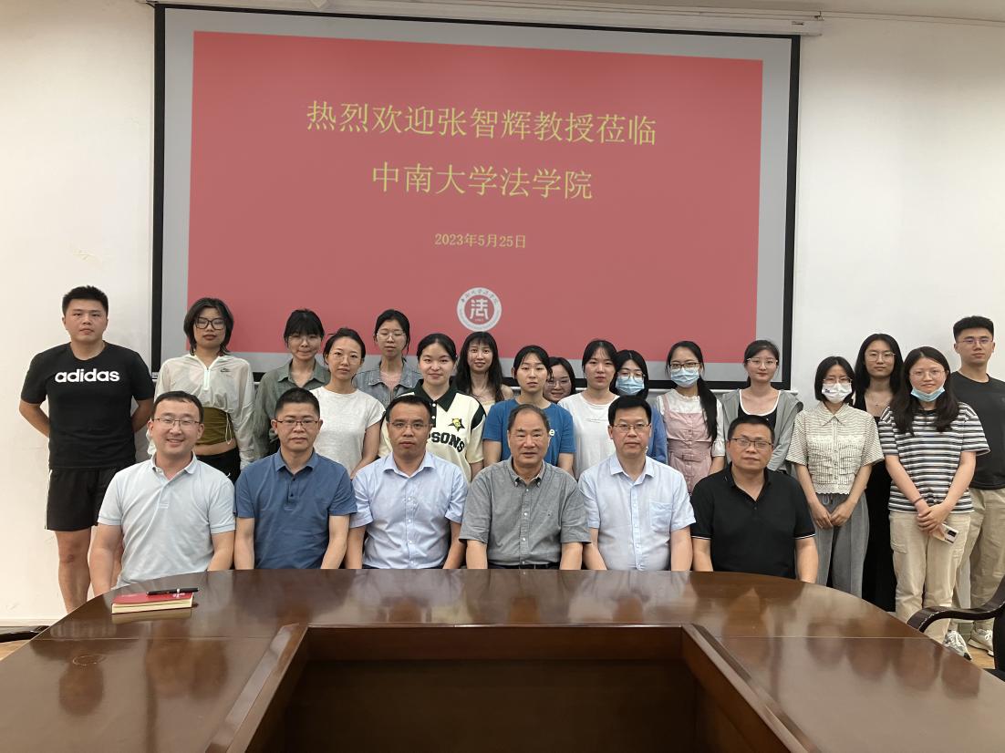 2023年5月25日下午15时,湖南大学国家腐败预防与惩治研究中心主任张智辉教授莅临“中南大学海内外名师名家学术论坛”,在法学院以《刑法立法的价值取向》为题作专题学术讲座。法学院院长许中缘教授致欢迎辞,副院长杨清望教授主持讲座,刘刚副教授、罗树志副教授、詹红星副教授、郑泽星博士以及在读刑事法学硕士研究生到场聆听。
