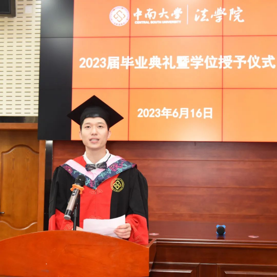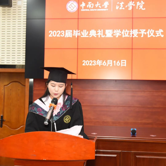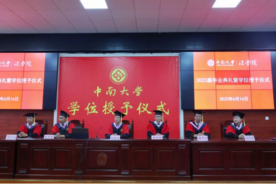中南大学法学院衷心祝愿每一位2023届毕业生都能践行“知行合一、经世致用”的校训,牢记“向善求真、唯美有容”的校风,贯彻“人本、求实、卓越、担当”的理念,在人生的征程中闯出广阔的天地,云程发轫、万里可期。