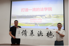 会前,李华东书记和许中缘院长陪同范浩松董事长参观法学院育人基地“习近平法治思想长廊”。许中缘院长详细介绍了法学院以长廊形式贯彻习近平总书记关于落实立德树人、德法兼修实现高素质法治人才培养的创新方式和习近平法治思想的深刻内涵。