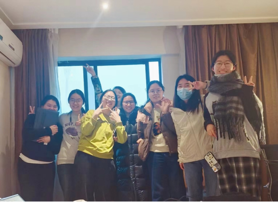 第二排(从左到右):李祎岚(教练)、刘冰、朱钰洁(教练)、聂若彤(教练)、杨佳芮、郑泽星(指导老师)