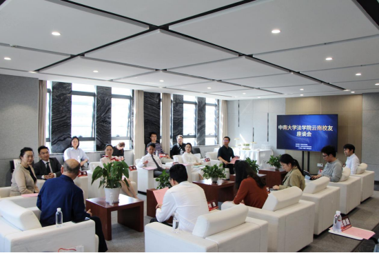 中南大学法学院云南校友会座谈会于4月26日下午在华商(昆明)律师事务所创新法律服务交流与合作中心召开。法学院党委书记李华东,党委副书记刘勇、学工办主任李亚萍、分团委书记黎梦、辅导员李儒荣、本科生二支部副书记田诗扬和华商(昆明)律师事务所高级合伙人何蕊珠、主任徐涛、执行主任孙昕、管委会主任周晓明、副主任兼业务委员会主任陈婷、副主任兼合规委员会主任张兴、行政总监刘昆,以及十余名云南地区校友代表参与了本次座谈会。