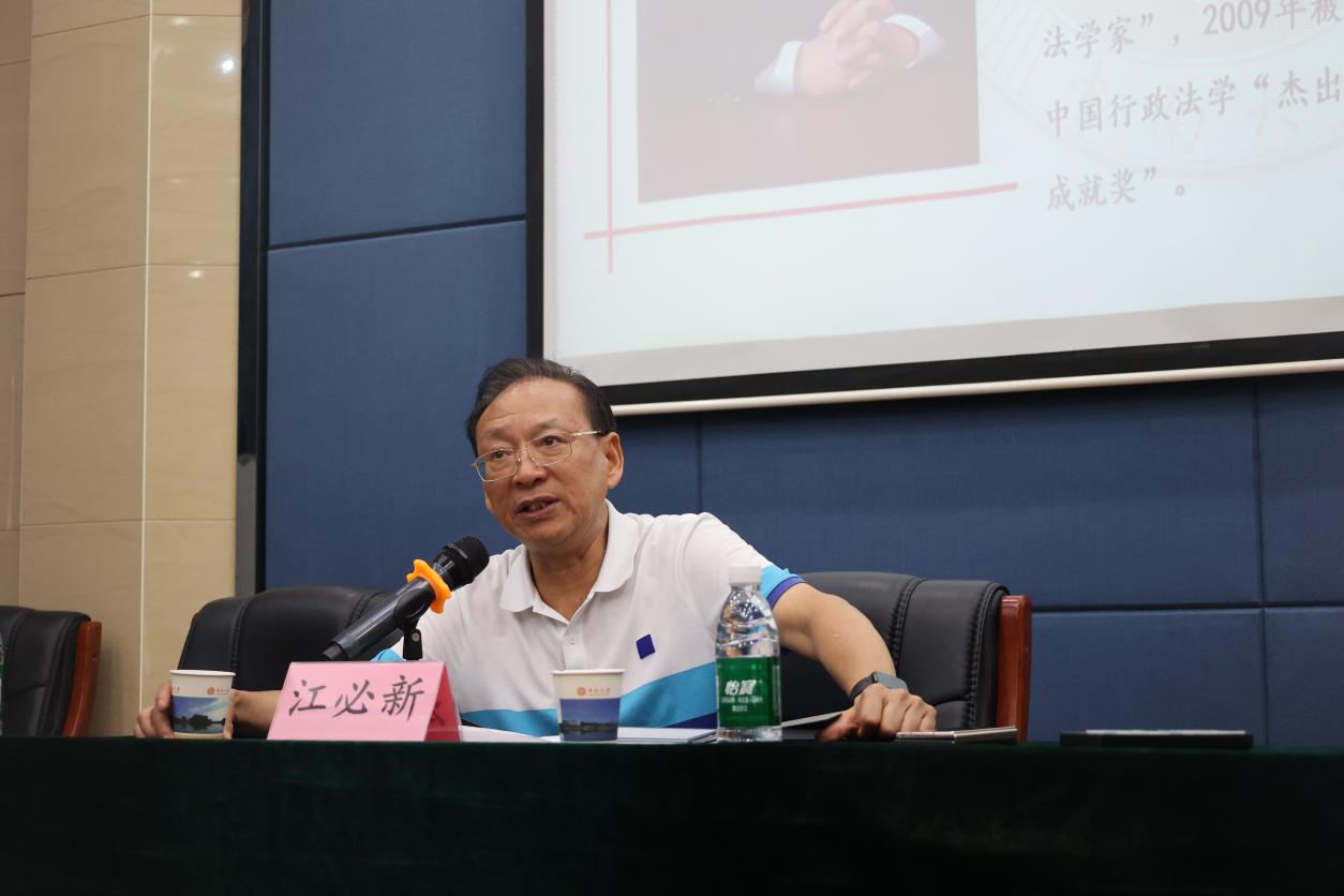 为深入学习贯彻党的二十届三中全会精神,我院于2024年9月18日邀请我国著名法学家、中国法学会副会长江必新教授以“学习贯彻三中全会精神,深入推进依法行政”为主题开展专题讲座。讲座由中南大学法学院党委书记李华东主持,法学院师生共近百人参加了讲座。