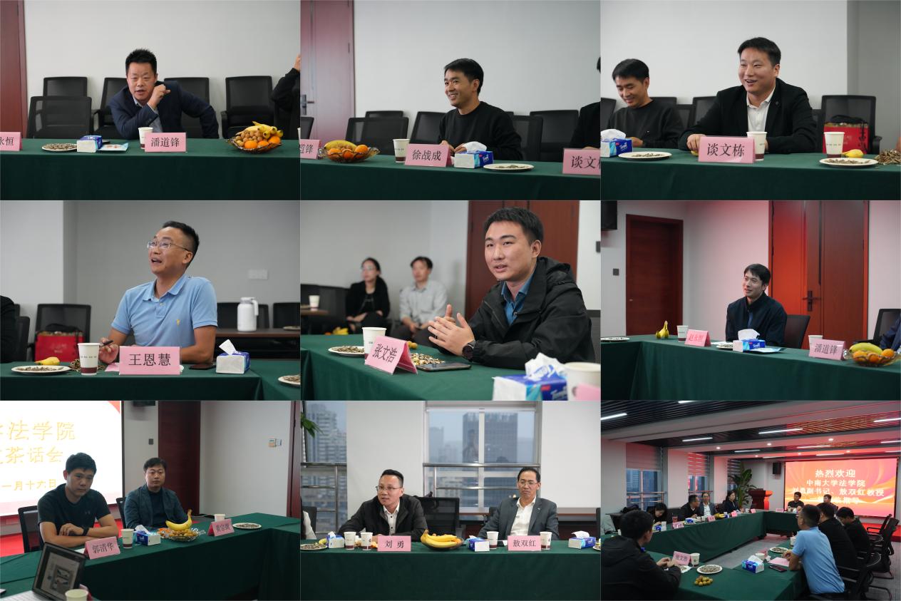 在参观调研结束后,浙江资信律师事务所执行主任潘道锋律师、合伙人、中南大学法学院校友王恩慧律师组织了中南大学法学院杭州校友茶话会。参加本次茶话会的还有中南大学浙江校友会代表郭清华、黄宗湖先生和法学院在杭工作的中南毕业生赵永恒、徐战成、谈文栋、张文浩等人。