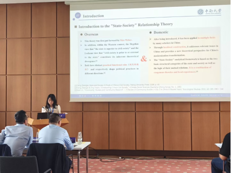 潘笛以《基于“国家-社会”视角的集体经济组织主体构建研究》为题做学术汇报。从国内国外两个理论视角去分析“国家—社会”关系理论,进而符合本次会议的主旨,也即中欧交流。通过对贵阳市近300个样本的数据分析得出目前集体经济组织主体构建所存在的问题,得出当前乡村治理中存在党建引领落实不到位、乡村自治功能弱化等问题,同时长期以来乡村本土主体和政策相互博弈,难以分清两者之间权能边界,导致治理主体结构失衡。为此,本文基于“国家-社会”视角,构建稳定的三维乡村治理框架,为集体经济组织提供一个可行路径。汇报后,与多名老师交流沟通,更加明确了需要改进的方向。