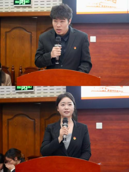 法学院二十二届研究生会主席刘畅总结了上一年度研究生会的重点工作,表明法学院研究生会将始终以习近平新时代中国特色社会主义思想为根本遵循,加强政治引领,全心全意服务同学,展现与时俱进的蓬勃面貌。