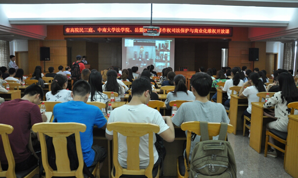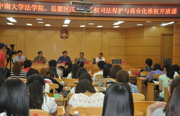 4月29日下午,一堂生动的《知识产权法》精品开放课在长沙市岳麓区人民法院举行。此次公开课由中南大学法学院、湖南省高院民三庭、岳麓区法院联合举办,围绕“著作权司法保护与商业化维权”这一主题,由在职法官和高校教授“三师同堂”同台讲授。针对法学问题,走出教室,深入法院,由法官介绍解决路径,由教师阐述学理反思,学生亲临现场提问,这在湖南省法院系统以及法学院的教学创新中尚属首次。中南大学法学院院长陈云良教授、省高院民三庭庭长曾得志、本科生院刘铁雄主任、岳麓区法院院长袁征等领导以及中南大学法学院的师生、岳麓区法院知识产权庭、研究室的法官参加此次活动。