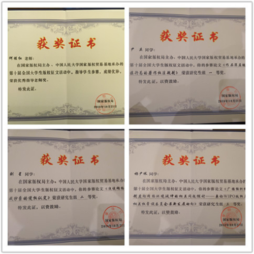 全国大学生版权征文活动已经举办十届,中南大学知识产权研究院认真对待历届全国大学生版权征文活动,广泛在学生群体中进行宣传推广,对于学生版权论文的撰写,研究院的老师们也进行悉心指导,以遴选出优秀论文参加比赛。中南大学研究院学子不负众望,多次斩获一等奖、二等奖、三等奖奖项。今年中南大学师生在第十届全国大学生版权征文活动中再创佳绩,可喜可贺。希望广大学子能够以更多的努力获得更多的成绩,为自己人生增添光彩,为中国版权事业做出贡献!