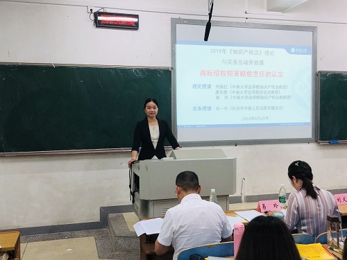 2019年5月23日下午,一堂别开生面的公开课在中南大学新校区B座118教室举行,由中南大学知识产权法何炼红教授和易玲副教授、诉讼法唐东楚教授携手长沙市中级人民法院孙一中法官组成了强大的“理论+实务”、“实体法+程序法”的授课团队,为法学2017级的同学们带来《商标侵权损害赔偿责任认定》“理论与实务”双师同堂开放课。