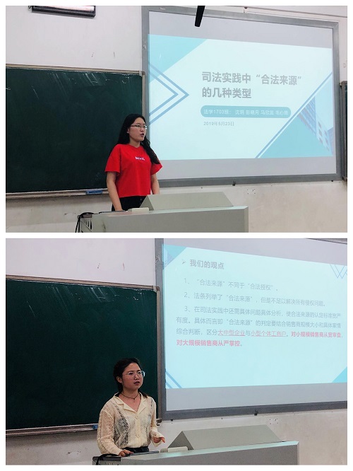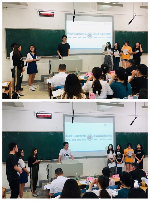 在“生生互动”阶段,同学们在形式上别出心裁,有的组进行PPT展示,有的组采取观点汇报形式,有的组模拟原被告双方辩论,为整个课堂的精彩呈现作了充足的准备。