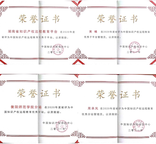 湖南省知识产权远程教育平台获“2020年中国知识产权远程教育优秀子平台”荣誉称号