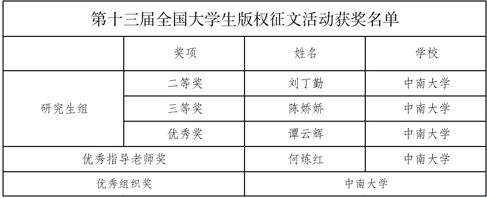 中南大学学子在第十三届全国大学生版权征文活动中再获佳绩