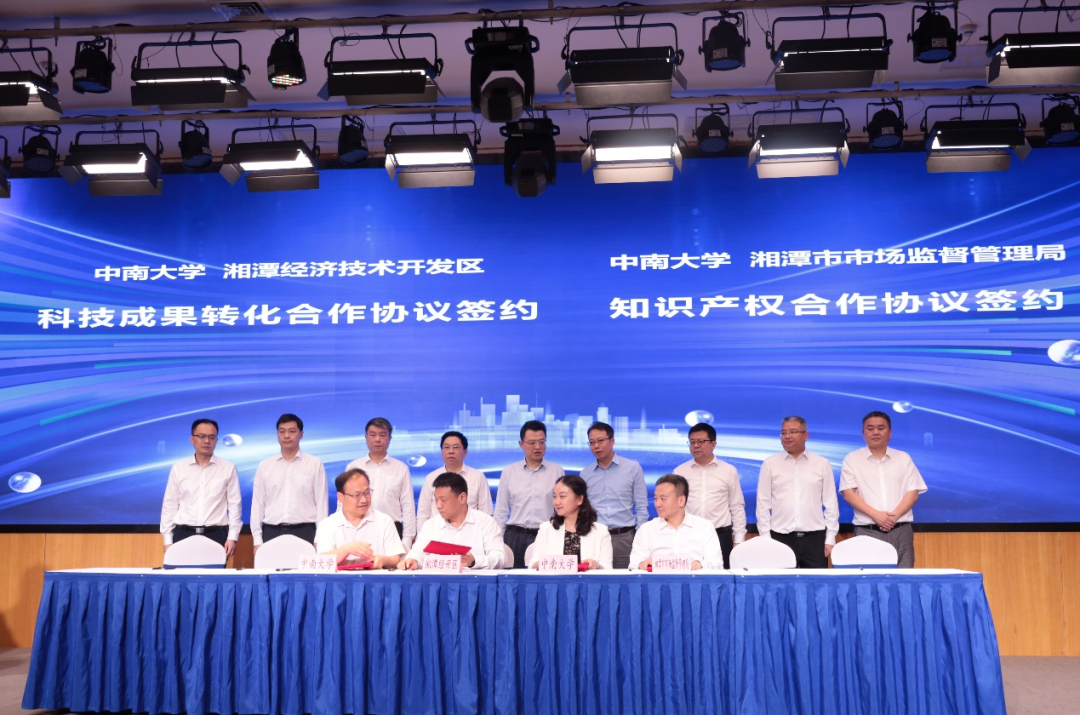 6月16日,在中南大学与湘潭市人民政府科技创新合作协议签约活动仪式上,中南大学知识产权研究院执行副院长、知识产权中心执行主任何炼红与湘潭市市场监督管理局局长赵波分别代表双方签署知识产权合作协议。湘潭市委副书记、市长胡贺波,副市长杨晓军、伍浩,中南大学校长李建成、副校长陈立章见证签约。