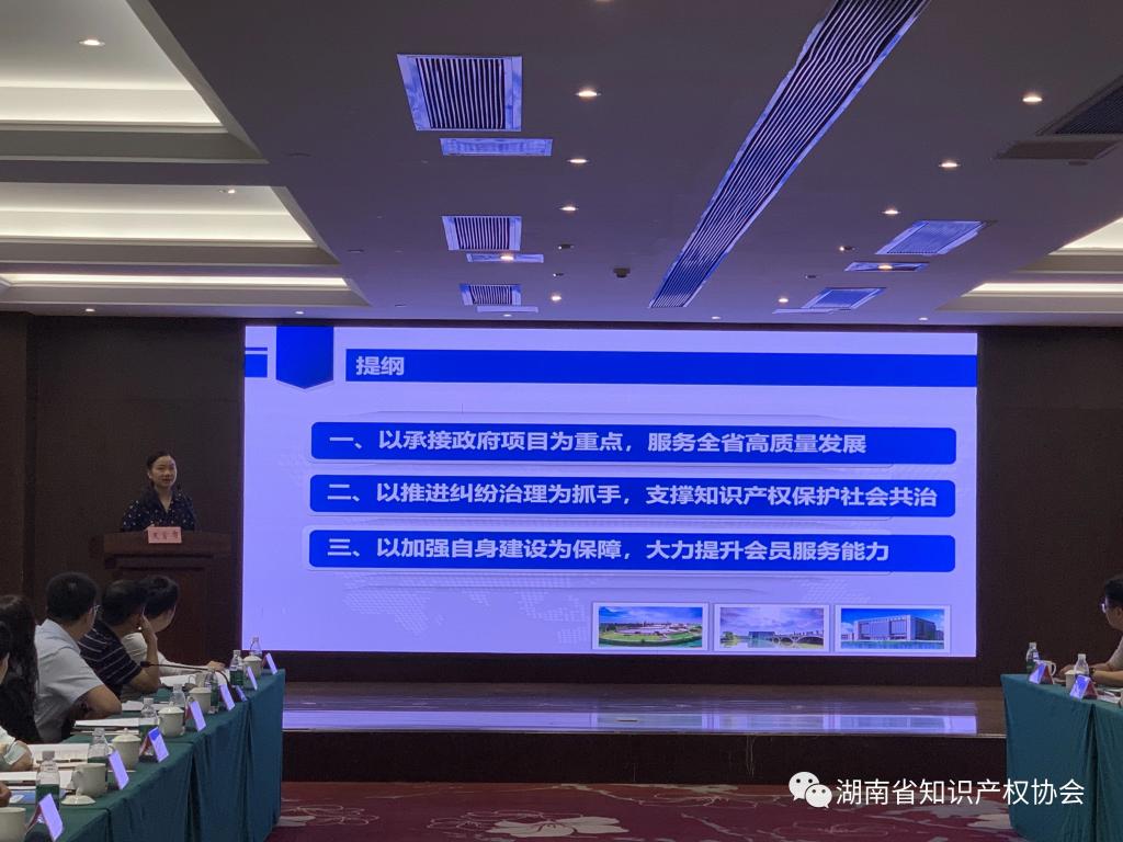 近年来,省知识产权协会在中国知识产权研究会的大力指导和湖南省知识产权局的坚强领导下,突出协会公益性、统筹性、专业性的特点,充分整合各项资源,坚持为政府服务、为社会服务、为会员服务,各项工作取得了新的突破。为政府服务方面,先后开展《湖南知识产权事业“十四五”发展规划》《国家知识产权局、湖南省政府共建“三高四新”知识产权强省建设实施方案》《关于强化知识产权保护的实施意见》《后疫情时代知识产权成果转化及高价值专利培育研究对策研究》等重大课题的研究或文件起草工作,并协助省局开展湖南专利奖评审、全省专利调查、专利侵权纠纷专家支撑服务等多项工作,全面助力全省高质量发展,为湖南“三高四新”知识产权强省建设提供智力支持。为社会服务方面,先后发起成立省知识产权纠纷人民调解委员会、湘鉴知识产权鉴定评估中心、长沙知识产权仲裁院等纠纷化解平台,扎实推进知识产权纠纷调解、鉴定和仲裁工作。自2020年以来,受理专利、商标、版权等各类调解案件近2600件,调解成功850余件,完成专利、商标、商业秘密等鉴定案件98件,并积极探索知识产权仲裁与其他知识产权保护途径相互衔接、有机互补,全面支撑全省知识产权保护社会共治。为会员服务方面,不断加强自身建设,完善秘书处工作部门设置,招聘优秀人才,遴选知识产权仲裁专家88名、调解专家99名、鉴定专家10名,建立高素质专业化的知识产权专家队伍;不断完善会员结构,吸引省内优质企业入会,利用专家队伍专业优势为会员提供课题研究、项目申报、预警分析、维权咨询等优质服务,深受会员单位好评,协会影响力和会员服务能力不断得到提升。