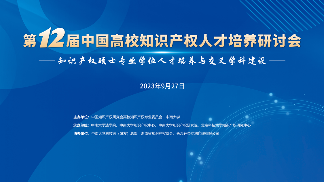 9月27日,第十二届中国高校知识产权人才培养研讨会在中南大学科技园(研发)总部举行。本次会议由中国知识产权研究会高校知识产权专业委员会和中南大学主办,中南大学法学院、中南大学知识产权中心、中南大学知识产权研究院和北京科技大学知识产权研究中心联合承办。会议以“知识产权专业硕士人才培养与交叉学科建设”为主题,近百位知识产权领域的专家学者参加。国家知识产权局人事司、湖南省市场监督管理局相关工作负责同志出席会议。中南大学副校长柴立元、中国知识产权法学研究会副会长陶鑫良、中国知识产权研究会高校知识产权专业委员会副主任委员徐家力等分别致辞。