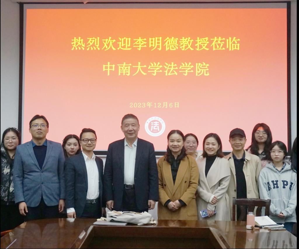 2023年12月6日晚,中国社会科学院法学研究所研究员、中国知识产权法学研究会常务副会长李明德教授应邀在我院作“数字时代著作权法保护的前沿问题”学术讲座。本次讲座由中南大学法学院副院长何炼红教授主持,易玲教授、刘强教授、部分实务专家以及法学院博士生、硕士生参加了讲座。